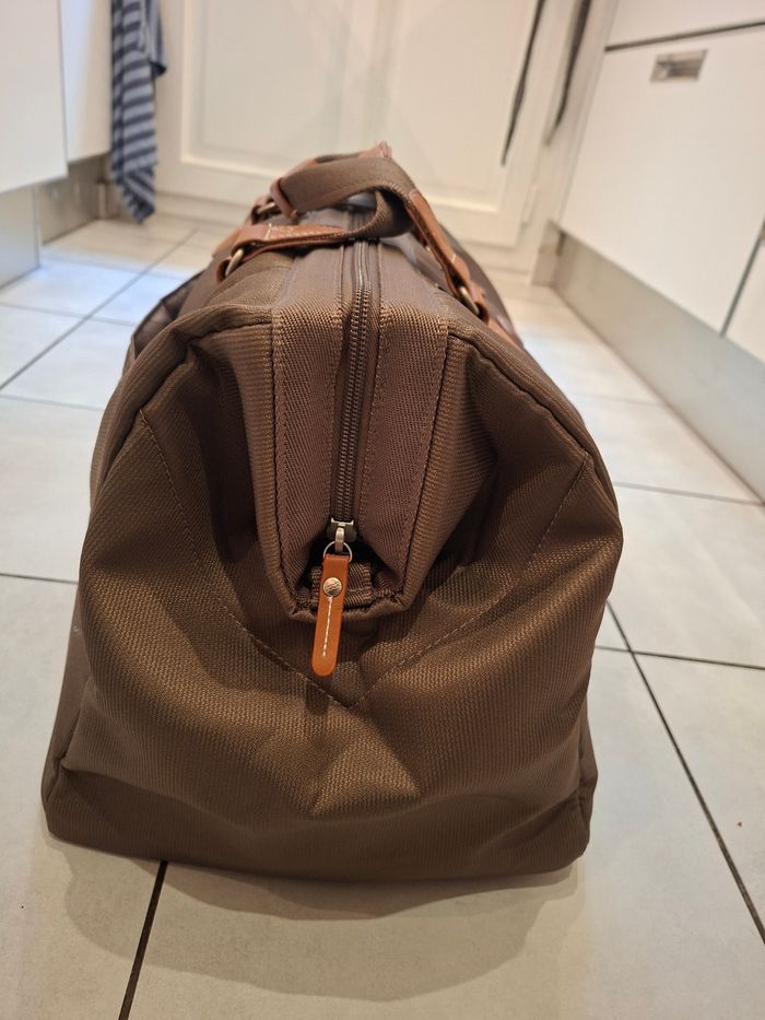 Un sac week-end Etretat Jump de couleur bronze (olive) avec sa sangle d'épaule.  Neuf. Jamais utilisé. Acheté dans un magasin de maroquinerie à  Bordeaux. Sous garantie fabriquant.  Conception française.  100 % polyester recyclé touché velours, doublure polyester et garnitures cuir. Deux poches zippées extérieures et deux très grandes poches zippées  intérieures.  Son tissu déperlant protège vos affaires des pluies légères. Sa ouverture à plat permet un rangement simple et organisé, et sa poche à accès rapide offre une solution pratique pour garder vos essentiels à portée de main. Grâce  à une sangle d’attache dédiée, il se fixe facilement à votre valise pour plus de confort en déplacement.  Finitions très soignées.  Dimensions : Longueur - 48 cm Epaisseur - 28 cm Hauteur - 29 cm Poids -900 gr Volume 33l Garantie 5 ans (acheté en avril 2023). Envoi rapide et soigné. Avez-vous des questions ? Contactez le vendeur 🙃 !