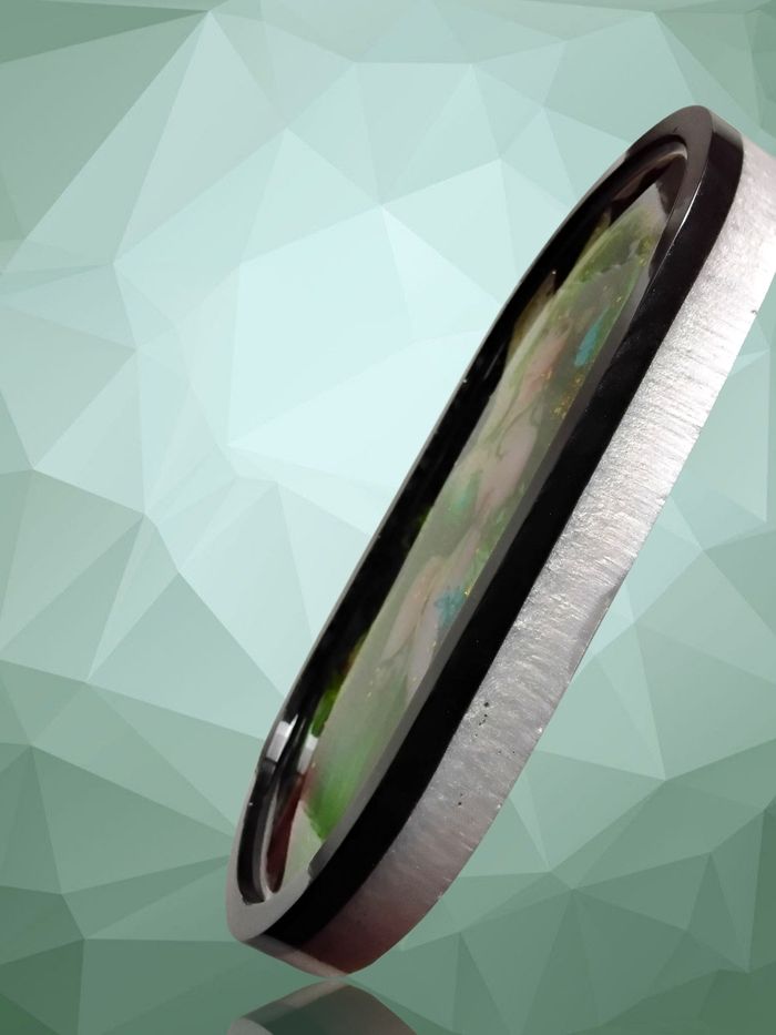 Un support décoratif qui allie magie et utilité… Cette pièce artisanale en résine met en scène une magnifique fée aux nuances vert émeraude, sublimée par des ailes lumineuses et de délicates touches scintillantes dorées. Son regard doux et mystérieux apporte une véritable atmosphère féerique à votre intérieur. Conçu comme support vide-poche, il est idéal pour accueillir vos clés, bijoux, pierres ou petits objets du quotidien. Sa forme ovale et son contour noir élégant mettent parfaitement en valeur l’illustration centrale tout en restant pratique et stable.