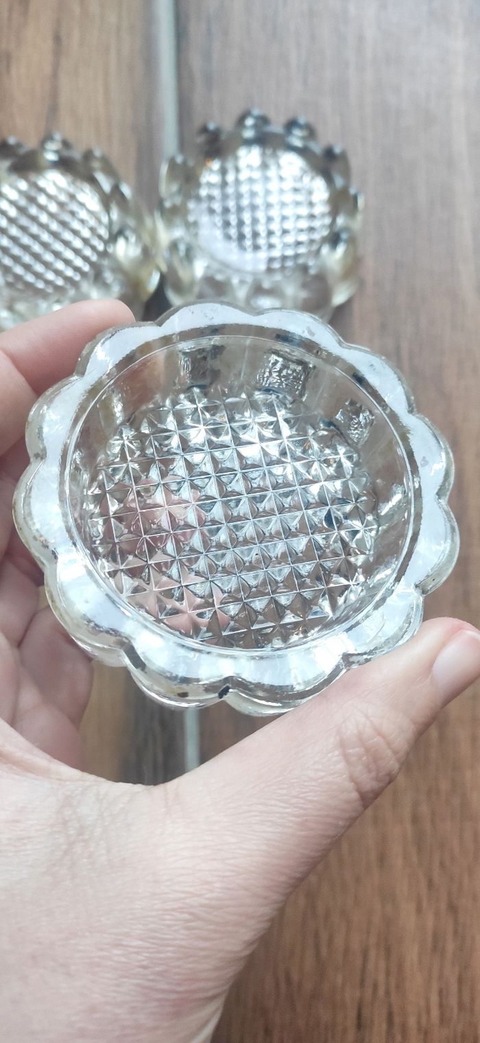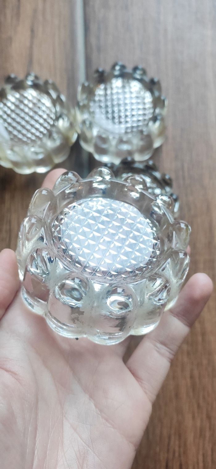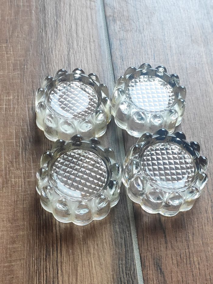 Lot de 4 pieds en verre, pour mettre sous les pieds de meuble. Idéal pour parquet (pour que les pieds ne transpercent pas le sol), ou tout simplement rehausser. Années 50/60, vintage.