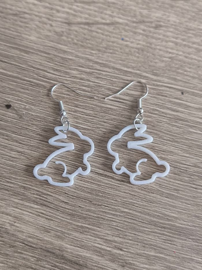 🕊️ Boucles d’oreilles lapin – Fait main – Impression 3D Jolies boucles d’oreilles en forme de colibri, imprimées en 3D, peintes et vernies à la main ✨ • Taille : environ 2,5 cm • Très légères à porter • Attaches couleur argent • Pièce originale et faite main Chaque paire est peinte à la main, ce qui la rend unique 💚 Idéales pour ajouter une touche colorée et originale à une tenue. Envoi soigné 📦 N’hésite pas si tu as des questions !
