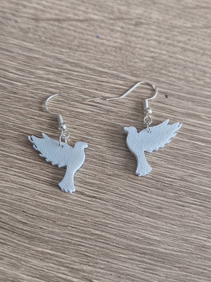 🕊️ Boucles d’oreilles colombes – Fait main – Impression 3D Jolies boucles d’oreilles en forme de colibri, imprimées en 3D, peintes et vernies à la main ✨ • Taille : environ 2,5 cm • Très légères à porter • Attaches couleur argent • Pièce originale et faite main Chaque paire est peinte à la main, ce qui la rend unique 💚 Idéales pour ajouter une touche colorée et originale à une tenue. Envoi soigné 📦 N’hésite pas si tu as des questions !