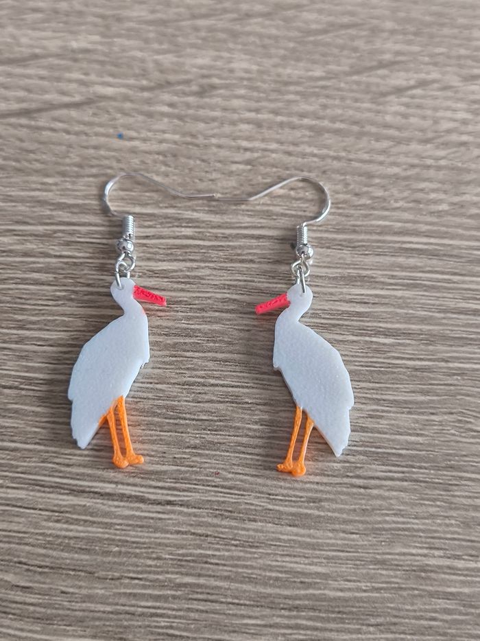 🕊️ Boucles d’oreilles cigognes – Fait main – Impression 3D Jolies boucles d’oreilles en forme de colibri, imprimées en 3D, peintes et vernies à la main ✨ • Taille : environ 2,5 cm • Très légères à porter • Attaches couleur argent • Pièce originale et faite main Chaque paire est peinte à la main, ce qui la rend unique 💚 Idéales pour ajouter une touche colorée et originale à une tenue. Envoi soigné 📦 N’hésite pas si tu as des questions !