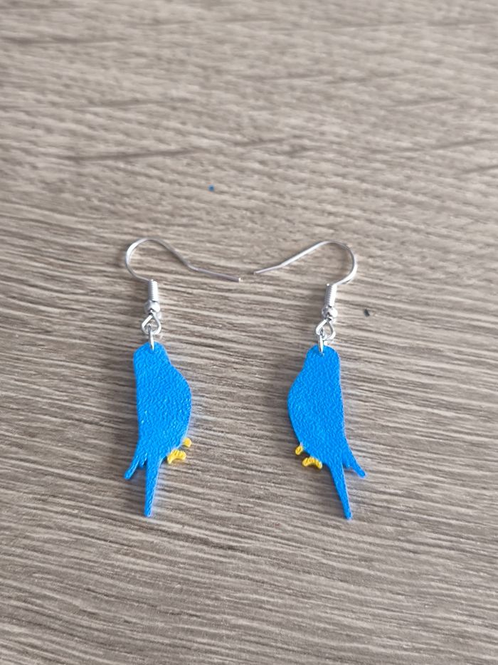 🕊️ Boucles d’oreilles perruches – Fait main – Impression 3D Jolies boucles d’oreilles en forme de colibri, imprimées en 3D, peintes et vernies à la main ✨ • Taille : environ 2,5 cm • Très légères à porter • Attaches couleur argent • Pièce originale et faite main Chaque paire est peinte à la main, ce qui la rend unique 💚 Idéales pour ajouter une touche colorée et originale à une tenue. Envoi soigné 📦 N’hésite pas si tu as des questions !
