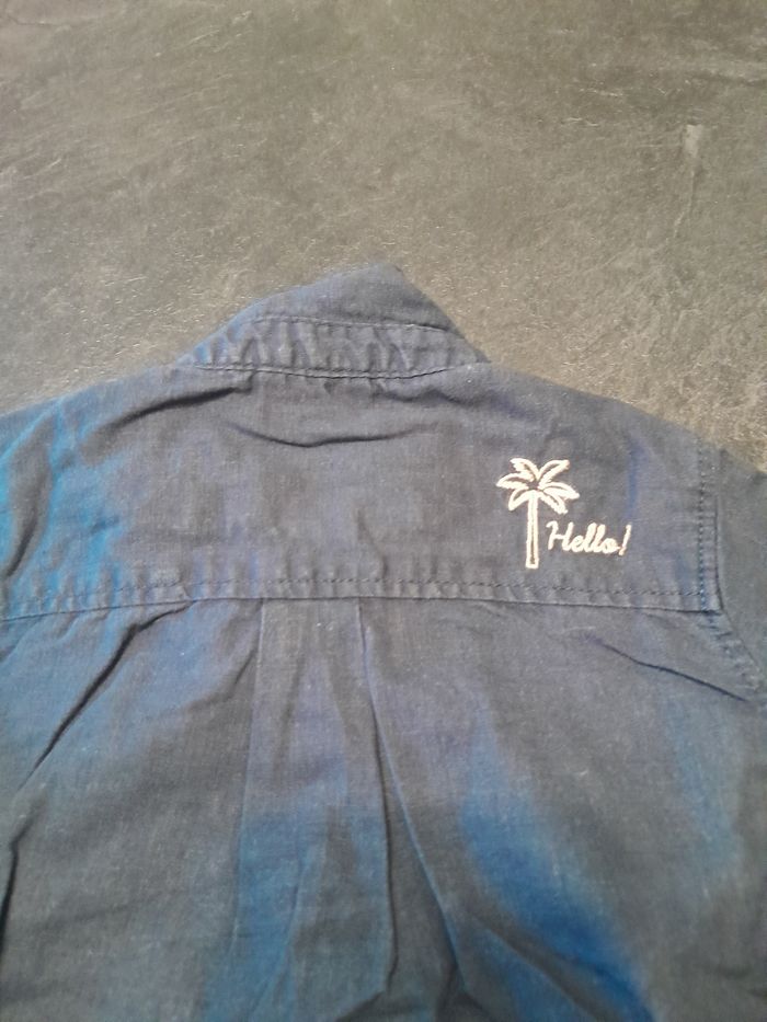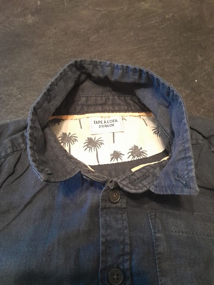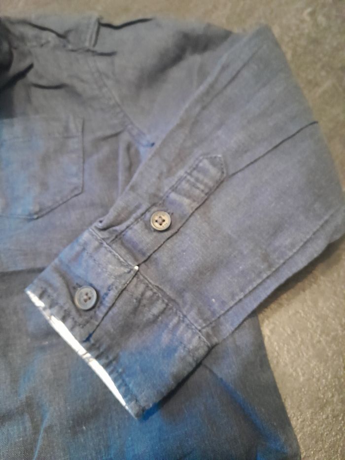 Chemise couleur bleu foncé, manches longues. Tape à l'œil. 2 ans