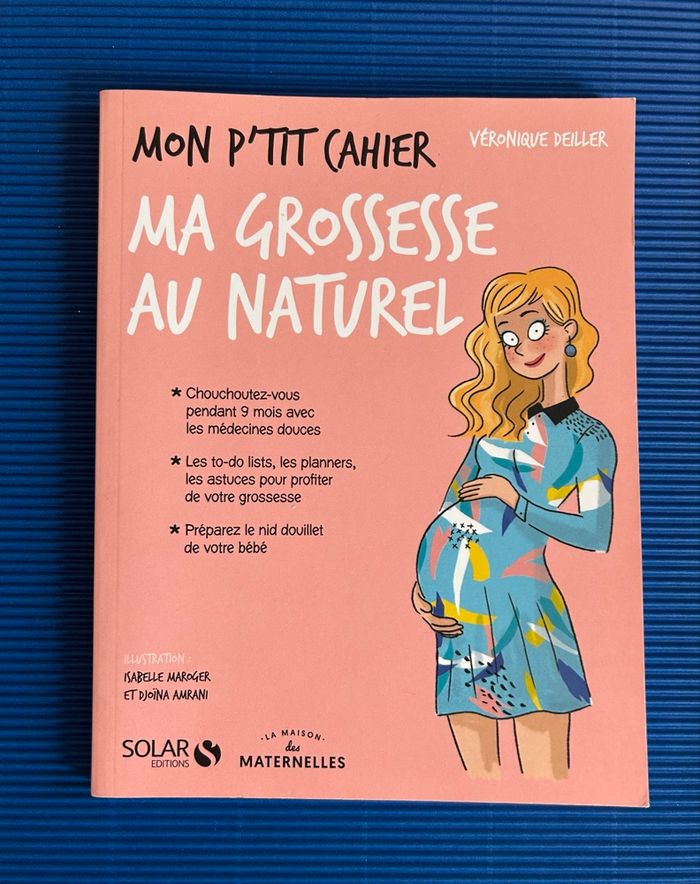 Je vends ce cahier en parfait état Titre : Mon p'tit cahier ma grossesse au naturel Auteur : Véronique Deiller, Isabelle Maroger, Djoina Amrani Éditeur: Solar Genre : Société - Culture Sous-genre : Psychologie Thème : Famille et vie pratique, Vie familiale, Naissance et maternité Format : Broché 95 pages Hauteur : 22 cm Largeur : 17 cm Résumé Une grossesse 100% naturelle, c'est possible ! Aucun cloute, les 9 mois que vous allez vivre sont uniques... comme vous ! Que vous soyez déjà adepte d'une vie plutôt saine ou une néophyte qui attendait la bonne occasion pour s'y mettre, inventez votre grossesse au naturel. Une grossesse 100 % bien-être, sérénité et santé, pour vous et pour votre bébé. Avec Mon p'tit cahier Ma grossesse au nature... Apprenez à connaître votre futur bébé : mois après mois, suivez son développement, ses mouvements, découvrez ce qu'il perçoit (ou pas) et créez du lien avec lui ! Chouchoutez-vous et chassez tous les petits maux de la grossesse : préservez votre santé grâce à l'homéopathie, à la phytothérapie, à l'acupuncture et autres alternatives douces et naturelles. Rester au top de votre forme : à privilégier et à black-lister... concoctez-vous des repas aux petits oignons. Préservez votre périnée, vos formes et votre moral avec des exercices de respiration et de relaxation. Préparez votre accouchement et l'arrivée de votre bébé : choix de la maternité, péridurale, allaitement, choix des matériaux et du matériel de puériculture... posez-vous toutes les bonnes questions et prenez les bonnes décisions ! Envoi rapide et très soigné