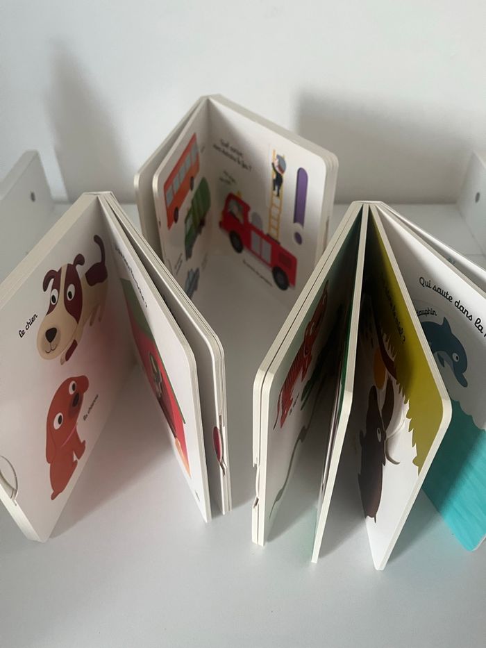 Âge : À partir de 1 an Les 3 sont neufs jamais lu Valeur de un seul : 8.95 euros donc le lot vaut 26,85 euros Je vends le lot 17 euros - mon imagier des animaux sauvages - mon imagier des véhicules - mon imagier des animaux familliers