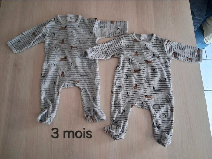 Pyjamas de chez kiabi Taille 3 mois Le deuxieme pyjamas a un defaut voir photo