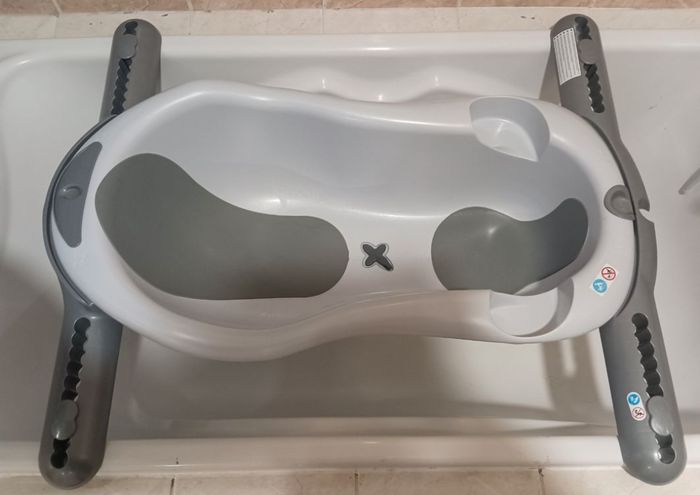 Baignoire + transat de bain (support pour baignoire inclus), en très bon état. Support sur pied vendu séparément mais possible de faire une proposition pour l'ensemble.