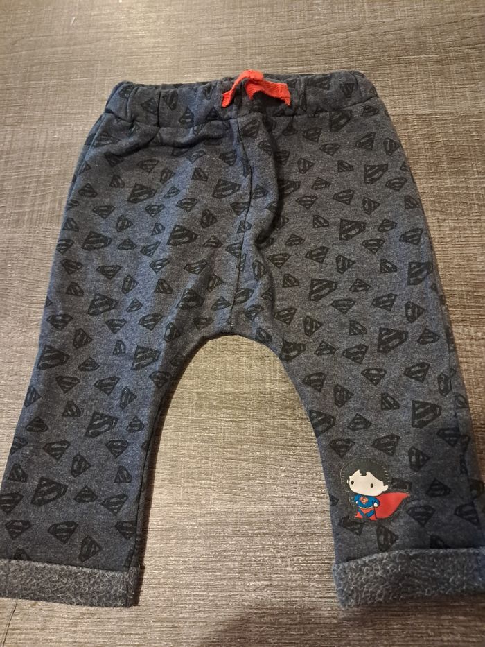 Pentalon gris motif super man Coton / Polyester Marque justice league Taille 6 mois