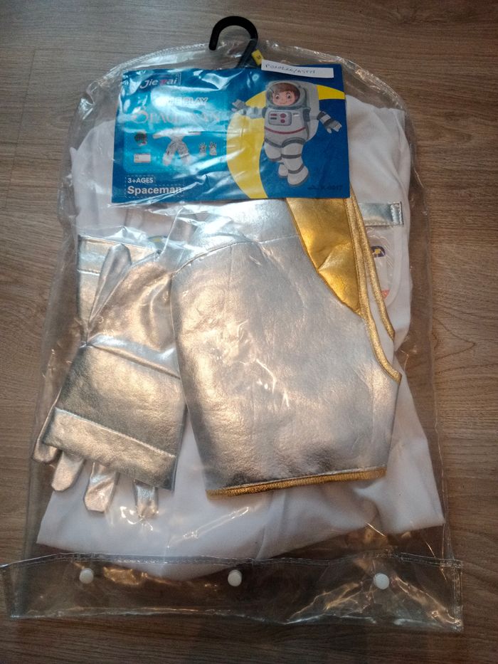 Costume d'astronaute Taille 5/7 ans, Contient : une combinaison (95 cm) avec poche transparente sur la poitrine, un casque en tissu et une paire de gants.