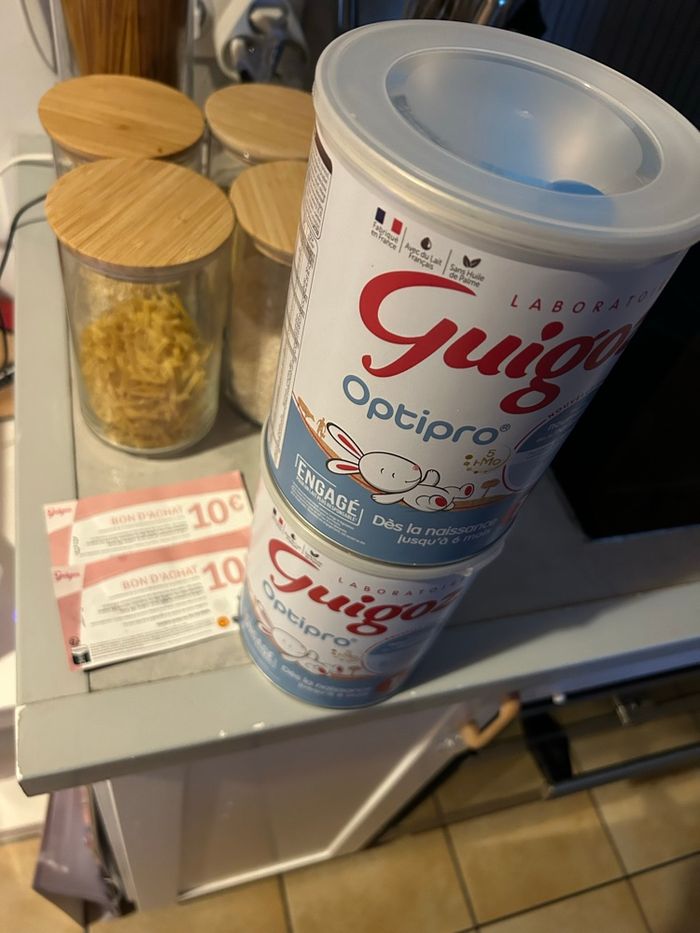 25€ les deux boites 10/2026 + les deux bons offerts de 10€ par GUIGOZ en dédommagement Lait guigoz 1e âge (PAS CONCERNÉ PAR ALERTE) on a juste du changer de lait pour ne pas se retrouver en galère comme bon nombre de personnes )