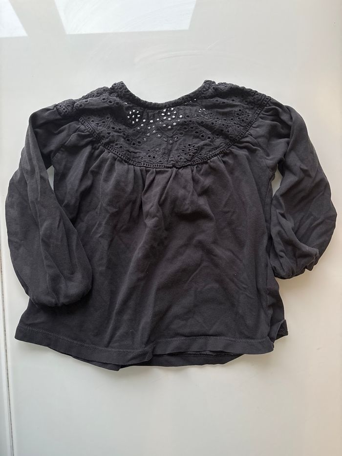 Tee shirt manches longues noir, marque Tape à l’œil, taille 24 mois. Col en dentelle