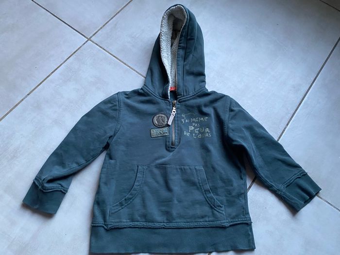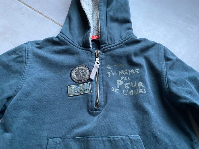 Sweat pull bleu et kaki à capuche Okaou Taille 6 ans