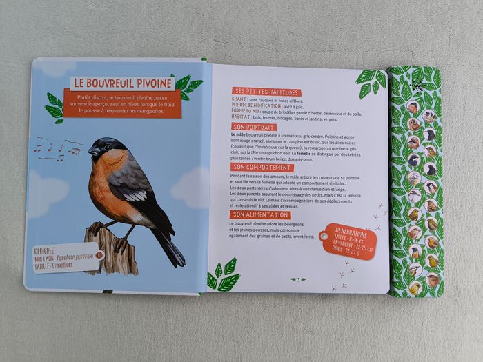 -> Bouvreuil pivoine, chardonneret élégant, chouette hulotte, étourneau sansonnet, geai des chênes, grive musicienne, hirondelle de fenêtre, merle noir, mésange bleue, moineau domestique, pic vert, pinson des arbres pouillot véloce, roitelet huppé, rossignol philomèle, rouge gorge familier, rougequeue à front blanc, serin cini, sittelle torchepot, troglodyte mignon, verdier d'Europe