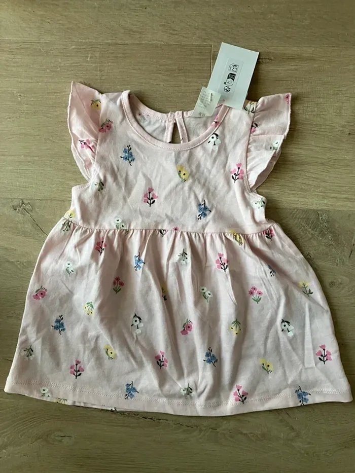 Robe en coton à fleurs H&M 4/6 mois 68 cm neuf avec étiquette