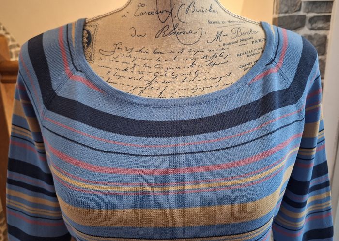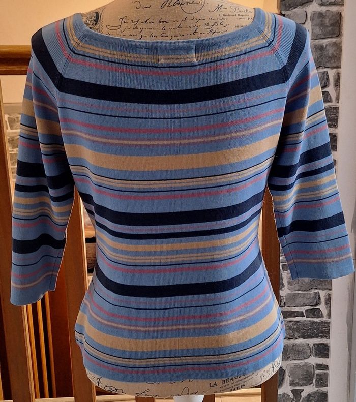 Tee-shirt vintage rayé bleu/jaune/rose - photo numéro 4