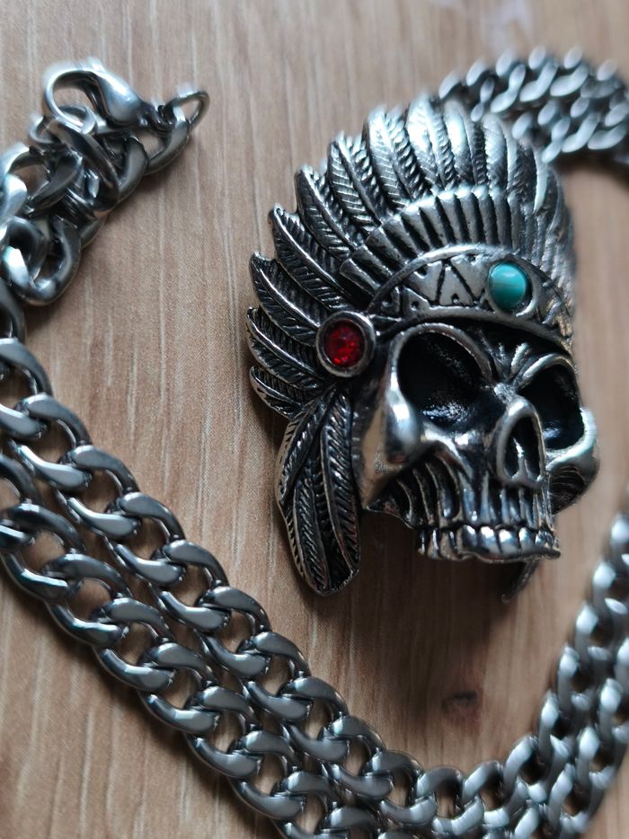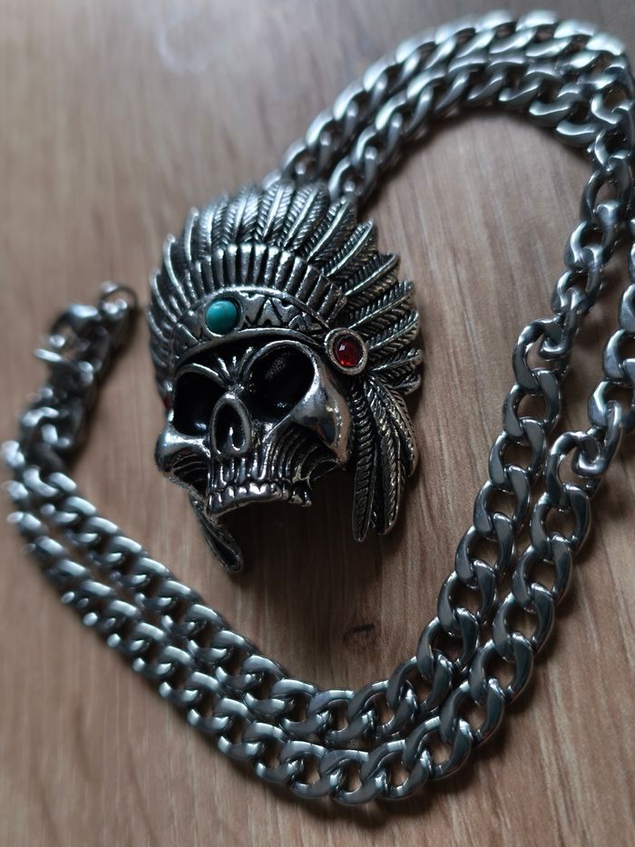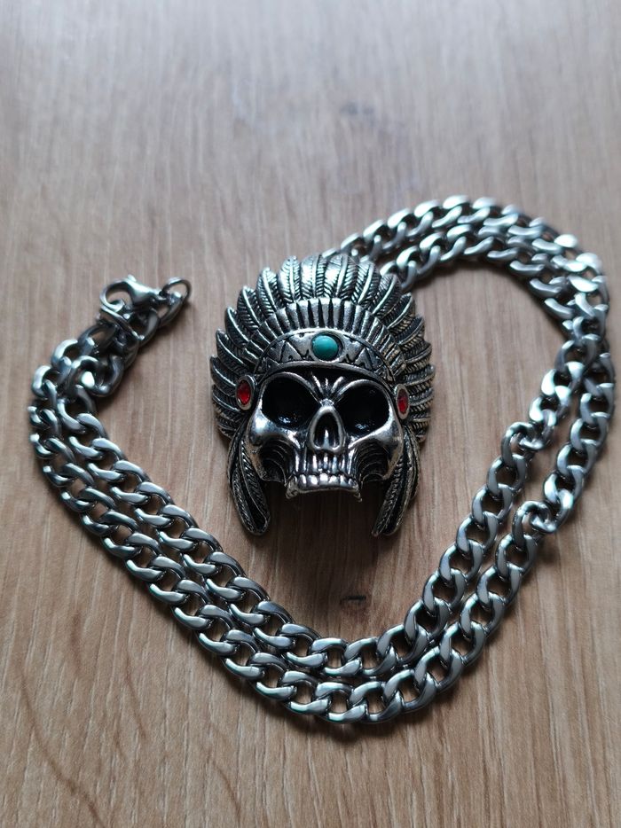 Pendentif tête d'indien en acier inoxydable Chaine acier inoxydable Longueur 60 cm largeur 5mm épaisseur 1.2 mm Neuve
