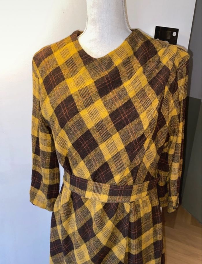 Robe mango marron et jaune moutarde Taille l État impeccable Épaules 47 cm Aisselles 49 cm Longueur 99 cm Envoi rapide et soigner