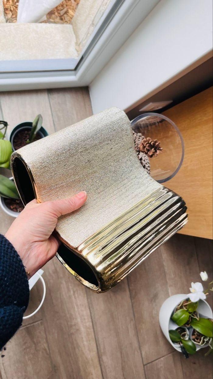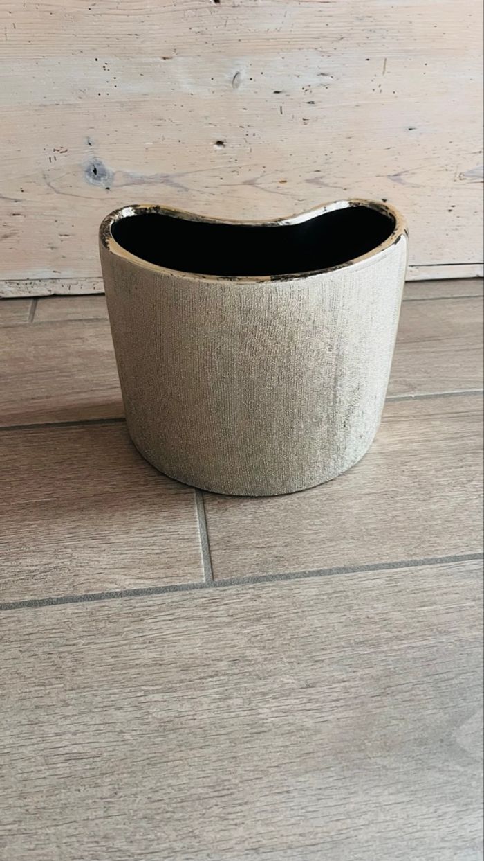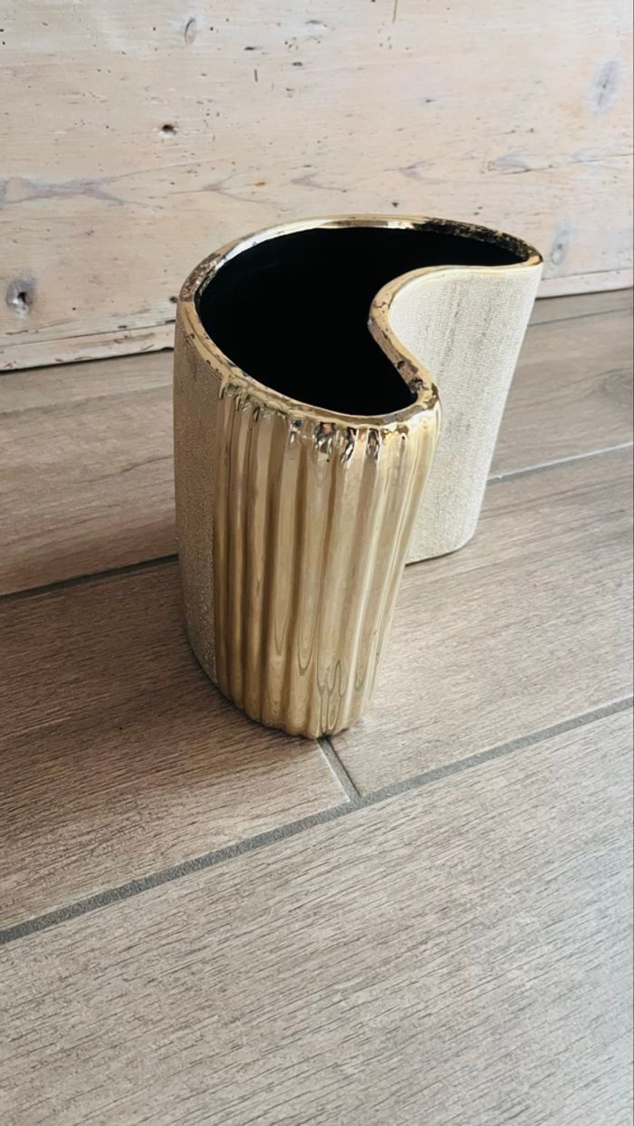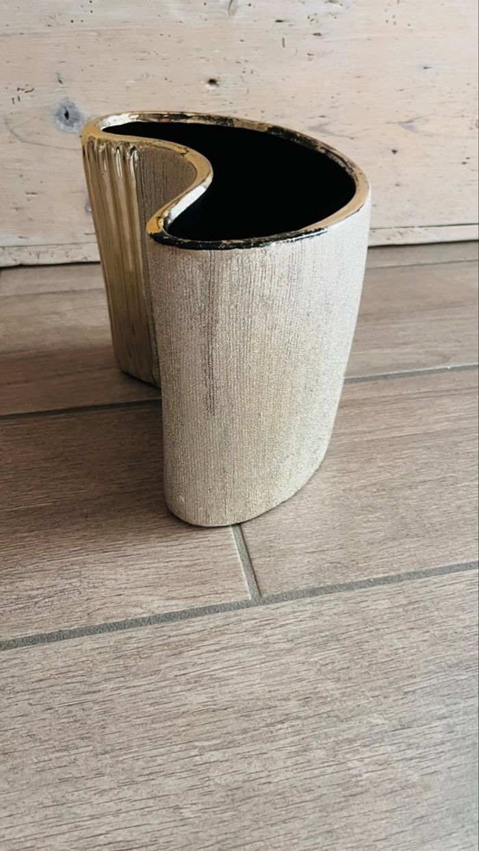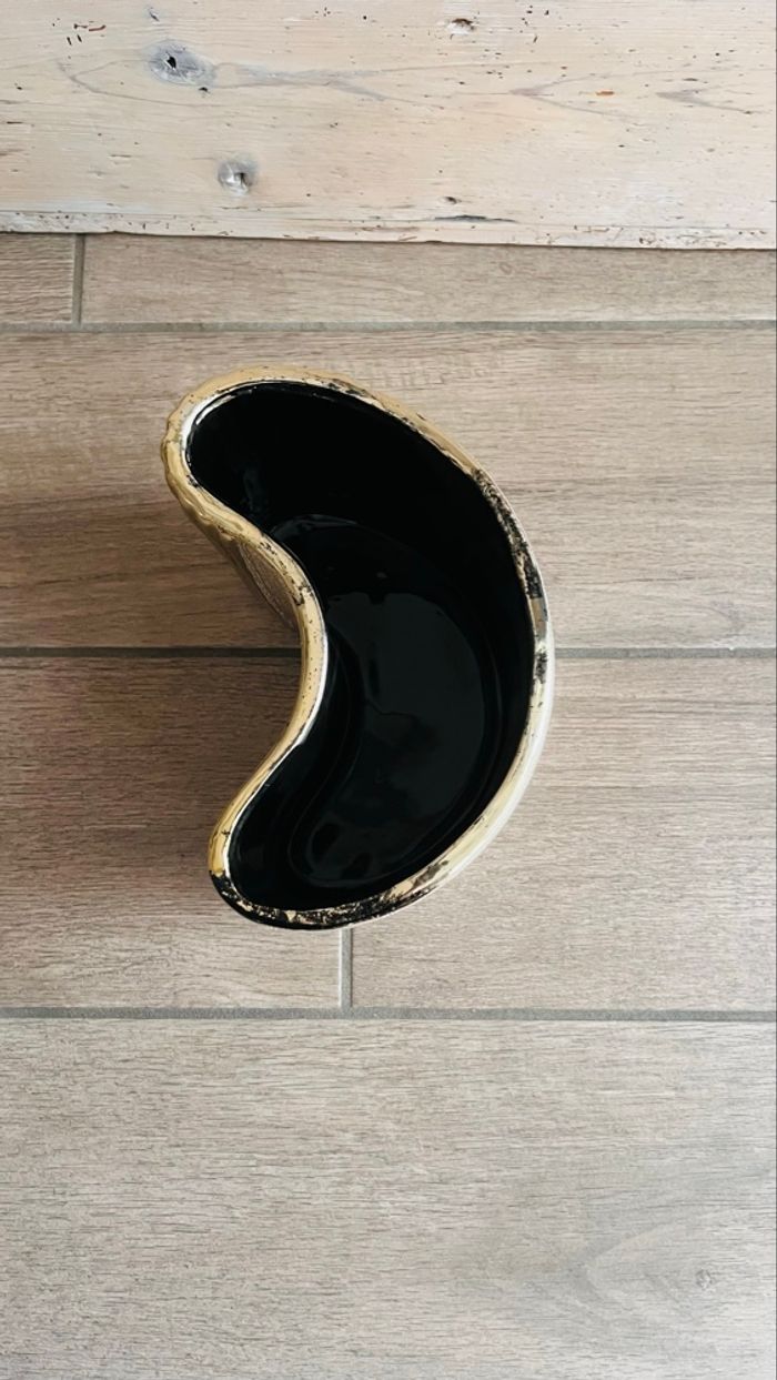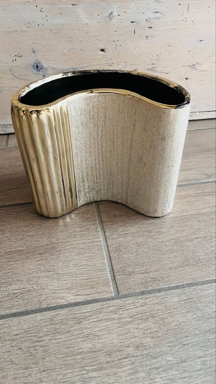 Vase demi lune H17 et 20x14 Doré, dorure effacée sur le bord haut, intérieur noir