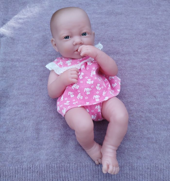 Bébé réaliste de la marque Berenguer (genre reborn). Sexué fille. Mesure environ 33 cm.
