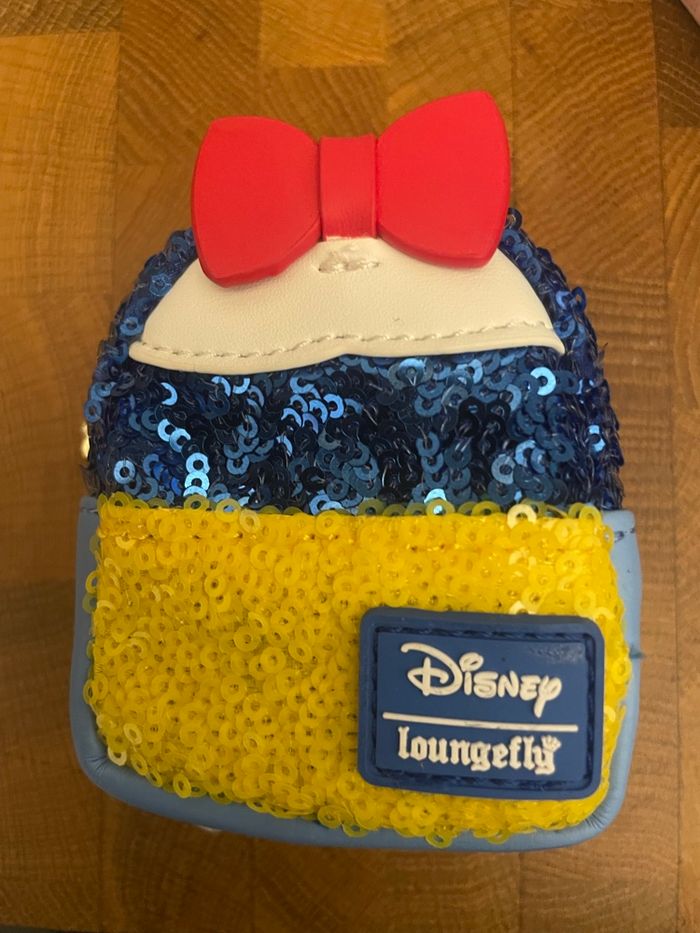 Mini sac à dos backpack porte clés Loungefly Princesses sequins Disney, mystery box neuve ouverte uniquement pour identification, Blanche-Neige. Envoi rapide et soigné