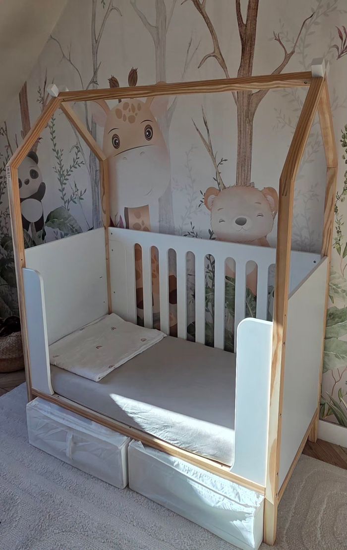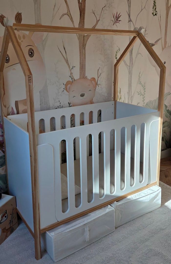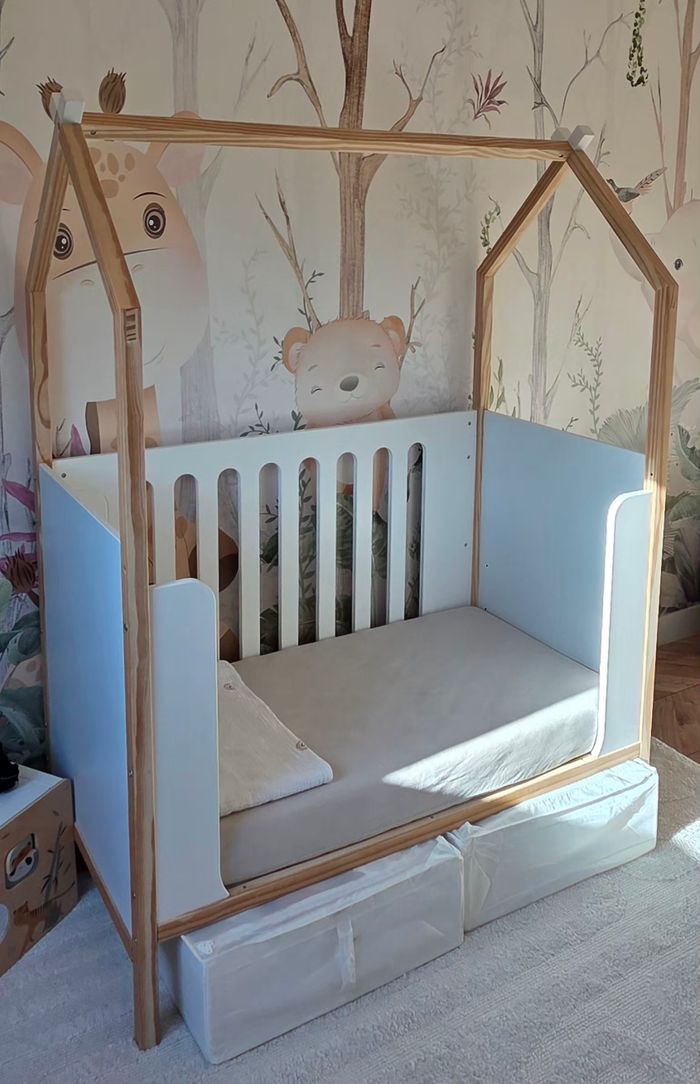 Lit cabane évolutif de la marque Vertbaudet modèle COCONUT L 124 x P 65 x H 165 cm ▪️Un côté se dévisse pour le transformer en lit banquette ▪️Doté d'un sommier réglable en hauteur sur 3 positions ▪️Couchage de 60 x 120 ▪️Charge maximale supportée par le lit en version banquette (barrière retirée) : 30kg Quelques marques d'usures sur les rebords du lit (cf 2 dernières photos) Toujours vendu sur le site à 349e Matelas vendu séparément, possibilité de faire un lot Rmp uniquement
