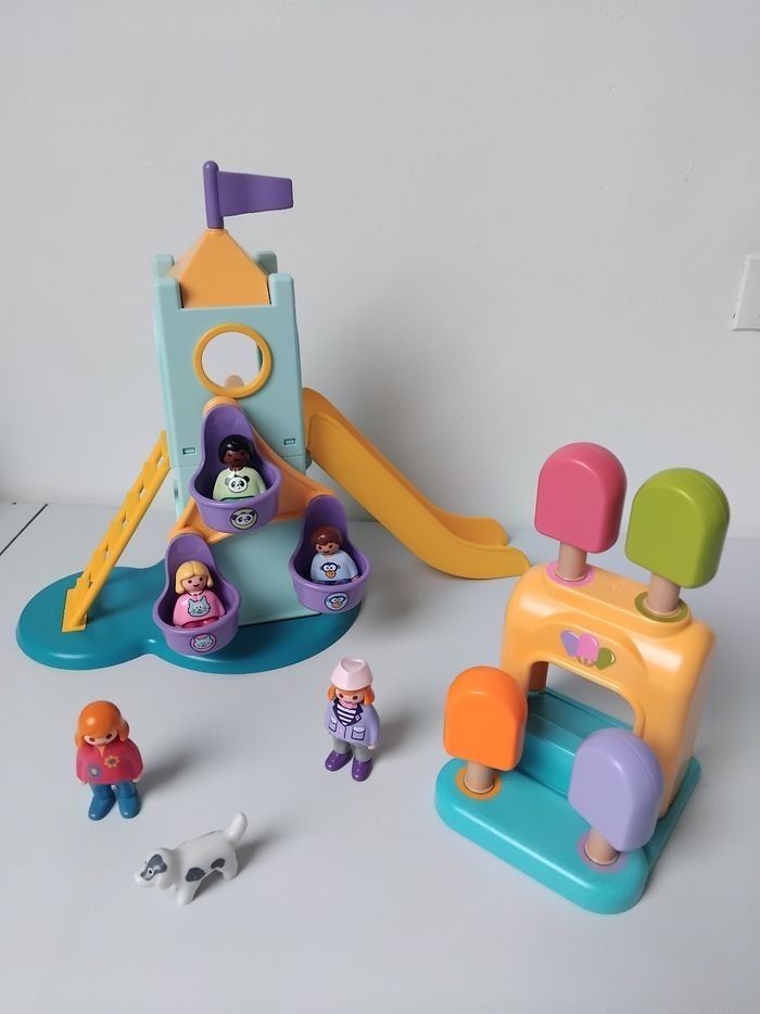 🎡 Lot de Jouets Playmobil 123 1er âge Junior : Fête Forraine avec Manège, aire de Jeux avec Toboggan et Marchande de Glaces. Jeu d'association de Couleurs avec les bâtonnets de glace. 👍 Jouets de Seconde Main, en Très Bon Etat, aucune pièce cassée, et propres, prêts à jouer. 🤩 Bon Plan Beebs! 🤩 -25% sur cet article*! 🤩 Avec le Code AMOUR25 à indiquer lors de la finalisation de votre commande! *Valable jusqu'au 24/02/2026 inclus, voir conditions détaillées sur la page d'accueil du site. 🛍 Groupez vos Achats et Cumulez les Promos! ✅️ Remise sur Lot Offerte dès le 2éme article, jusqu'à -10% ! 📦 Expédié en Points Relais. ✅️ Economisez -20% sur les Frais de Port Pour une livraison plus rapide, privilégiez Mondial Relay. Dépôt des colis au point relais du lundi au samedi. Rèf. Annonce : 71326 - B067