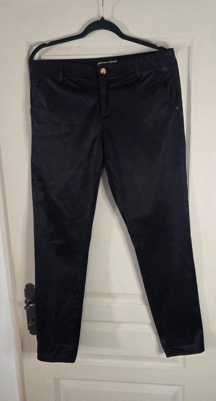 🖤 Élégant, moderne & ultra flatteur Superbe pantalon DDP noir à effet légèrement satiné, très chic et facile à associer. Détail bouton doré à la taille, coupe droite intemporelle qui allonge la silhouette ✨ Idéal pour le bureau, une sortie ou un look habillé casual. 📌 LES ESSENTIELS (à lire 👇) Marque : DDP Taille indiquée : 33/43 ➝ Correspond environ à un 42/44 FR (à vérifier avec mesures) Longueur totale : 100 cm Longueur entrejambe : 77 cm Largeur taille à plat : 42 / 43 cm Matière : 55% coton 42% viscose 3% élasthanne ➝ Confortable, légèrement stretch État : Excellent état ✅ Envoi : Rapide et soigné 📦 💎 Pantalon vendu neuf en boutique aux alentours de 69 à 89 € selon collection. Belle opportunité à prix doux. ⚠️ La couleur du vêtement peut légèrement varier en raison des conditions d’éclairage. Veuillez examiner attentivement les photos, les détails et les mesures fournies. Pour toute information complémentaire, n’hésitez pas à me contacter.
