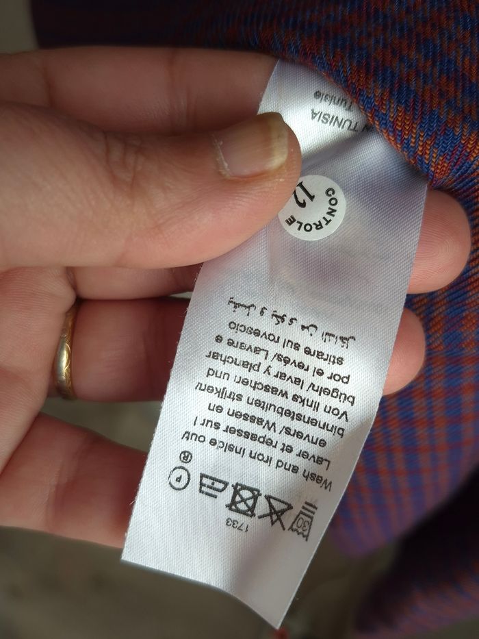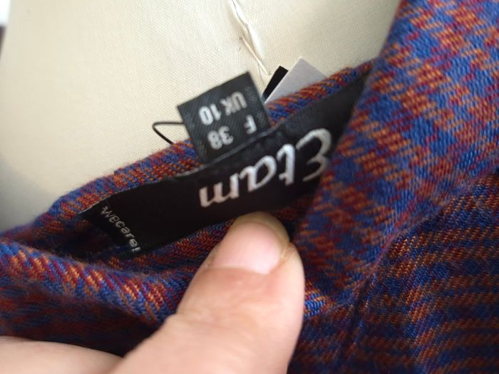 Jolie robe tunique Etam motif chevrons/carreaux femme T38 / M ​✨ Superbe robe courte ou tunique longue de la marque Etam. Elle présente un joli motif graphique dans les tons bleu marine, bordeaux et orangé, parfait pour un look automne-hiver ou de mi-saison. ​Détails de l'article : • ​Coupe : Fluide et confortable, style "chemise" avec col en V et liens à nouer (ou à laisser libres). • ​Manches : 3/4, idéales pour mettre en valeur des bijoux. • ​🧵 Matière : 100% Viscose (tissu doux, léger et respirant). • ​Dos : Joli pli d'aisance en V pour une belle silhouette. • ​✅️ État : Très bon état, soigneusement entretenue. ​Guide des tailles : • ​📏 Taille indiquée : 38 (F) / 10 (UK). • ​Convient également à un 36 pour un effet plus "oversize". ​🏠 Maison non-fumeur. 📦 Envoi rapide et soigné. 💡 N'hésitez pas à faire des lots pour réduire vos frais de port ! ##ribeirozazafemme38 #38femme #femme38 #robeetam #tuniqueetam #robefluide #etefemme #femmeete #38ete #ete38 ​#etam #robeetam38 #tuniqueetam38 #robefluide38 #motifgraphique #styleboho #casualchic #Ribeirozazafemme38 #modefemme38 #viscose #robeautomne
