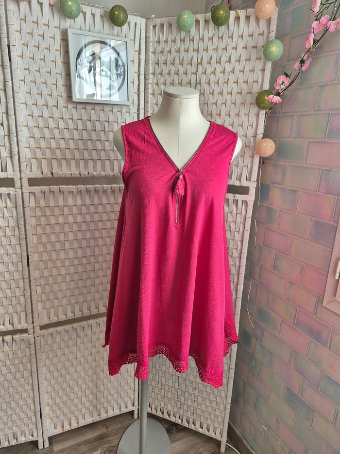 Joli top / tunique fuchsia Boho Chic mosquitos femme TM / 38 - photo numéro 1
