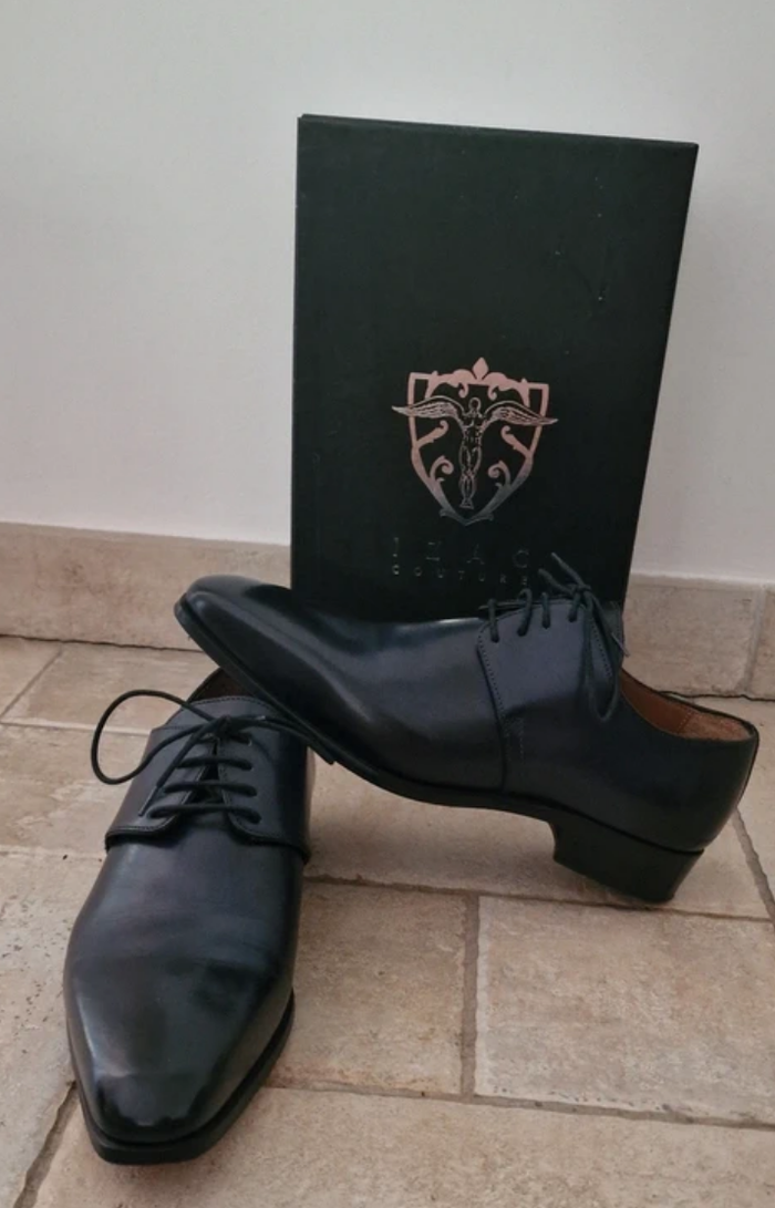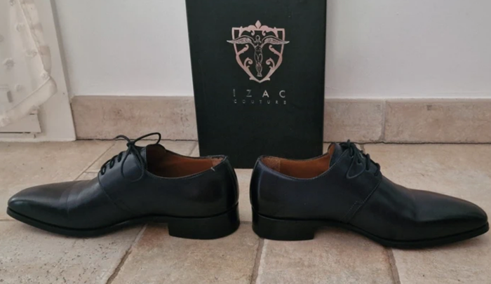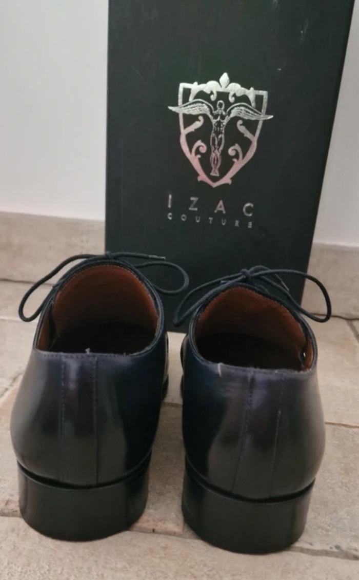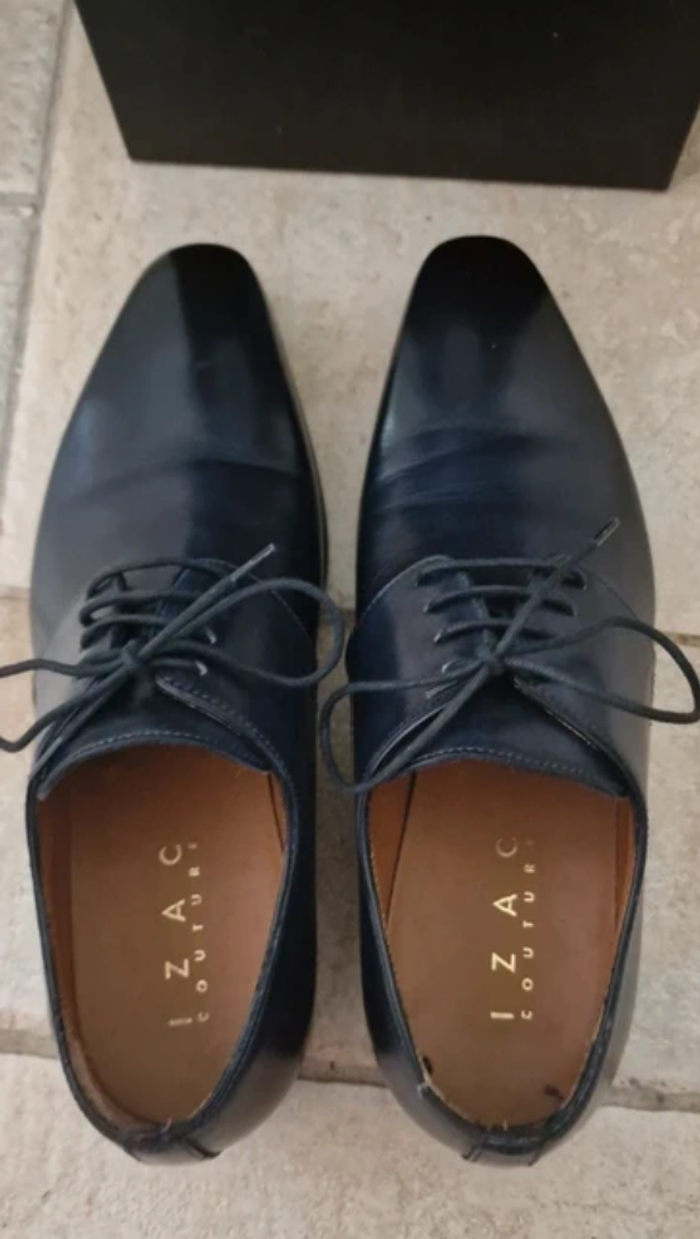 Optez pour l’élégance avec ces chaussures IZAC Couture, fabriquées en Italie dans un cuir bleu foncé haut de gamme. Portées une seule fois, elles sont encore en excellent état, hormis une discrète petite imperfection à l’arrière de la chaussure droite (voir photos), invisible une fois portées. Ce modèle, vendu neuf autour de 150–200 €, est proposé ici à un prix très avantageux, idéal pour profiter du style IZAC sans exploser son budget. Inclus : ✔️ Boîte d’origine ✔️ Pochons IZAC ✔️ Semelles cousu Blake – fabrication italienne ✔️ Pointure 40 Parfaites pour un mariage, une cérémonie ou une tenue professionnelle classe. ⚠️ La couleur du vêtement peut légèrement varier en raison des conditions d’éclairage. Veuillez examiner attentivement les photos, les détails et les mesures fournies. Pour toute information complémentaire, n’hésitez pas à me contacter.