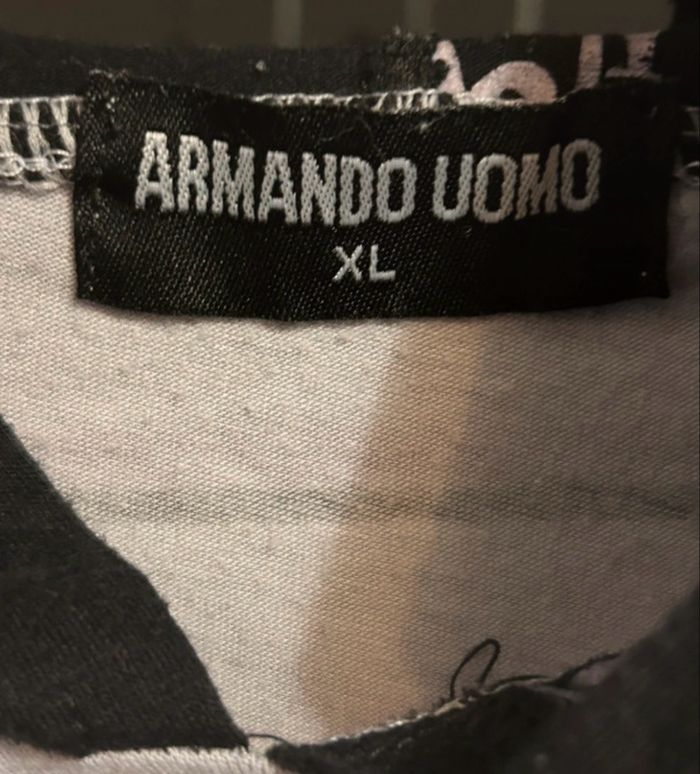 Je vends un t-shirt à capuche, de la marque « Armando Uomo », taille XL - Matière: 95% Coton - 05 Elastanne - Dimension: Longueur 67 cm - Largeur 45 cm - Couleur: Noir & Beige En très bon état 3,99€