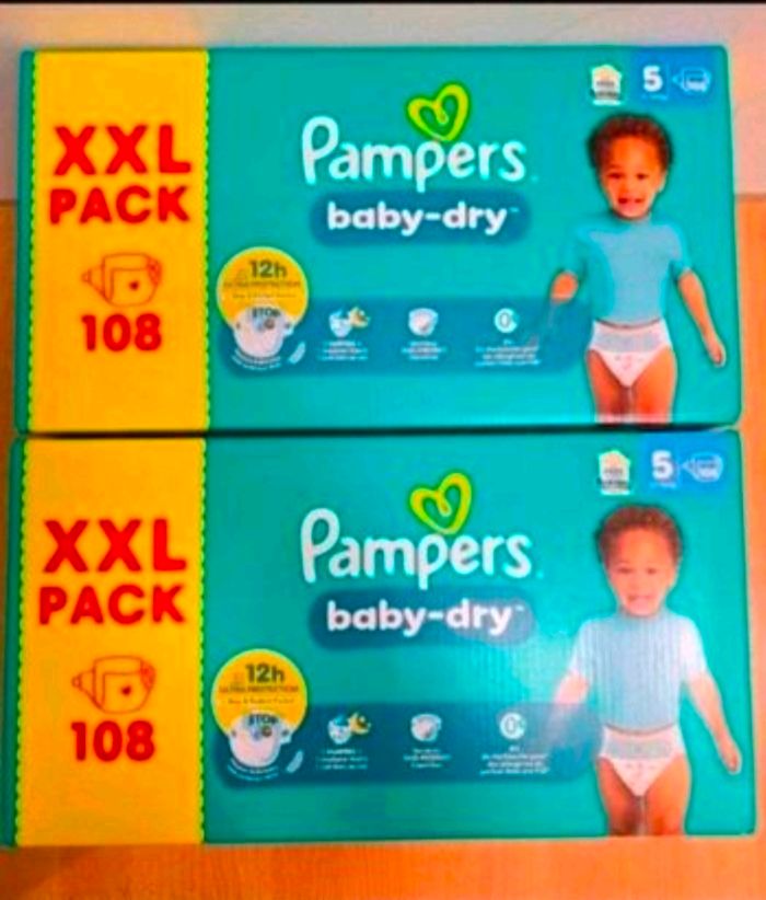 🍼 Pampers Baby-Dry – Taille 5 (11–16 kg) – Lot 2x108 couches – Neuf - photo numéro 1
