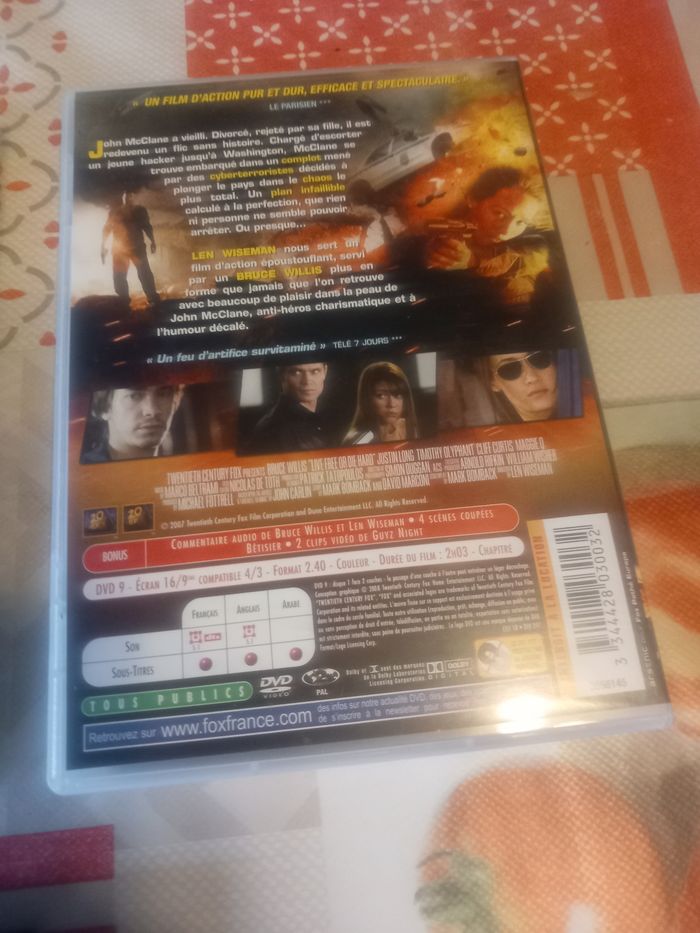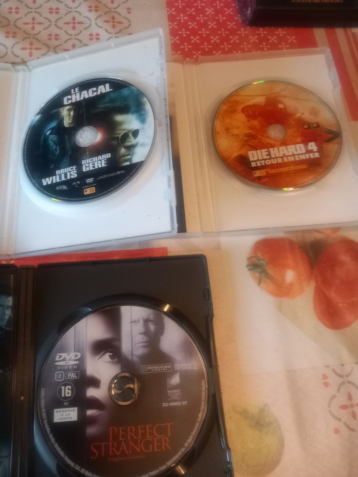 3 DVD films avec Bruce Willis 1 : Le chacal 2 : Die hard 4 retour en enfer 3 : Dangereuse séduction En très bon état