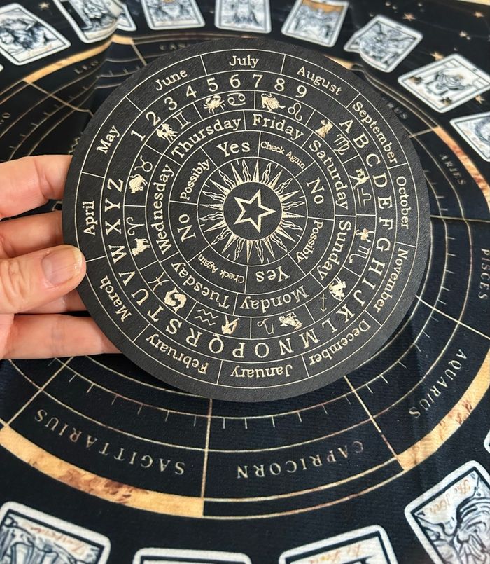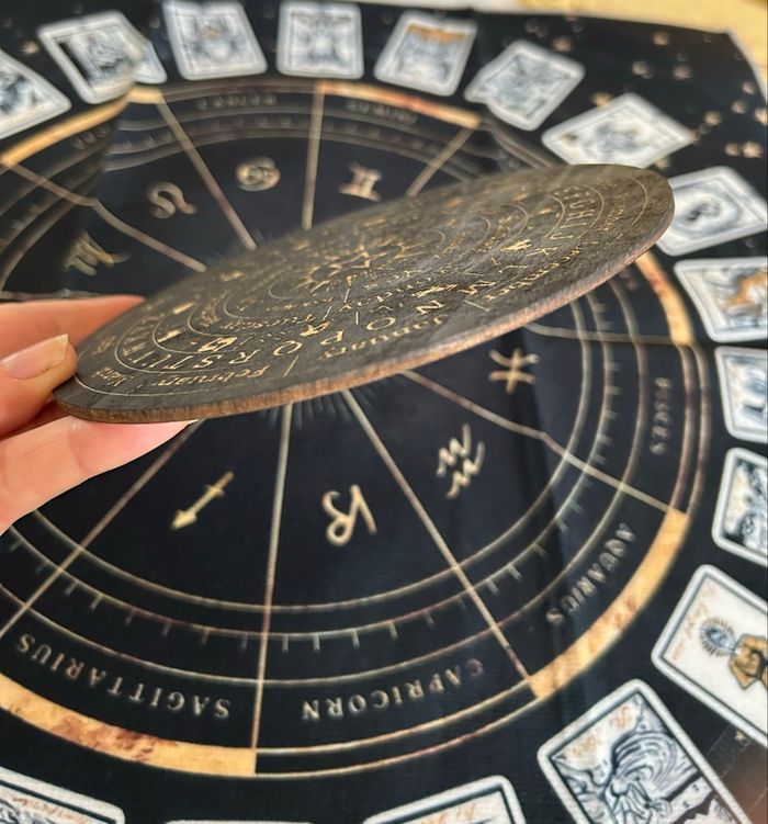 Je vends une Planche à pendule en bois Plaque ronde oracle divinatoire, Plaque en bois Diamètre 15 cm Créez le jeu de divination intéressant avec une fonction de 26 lettres de A à Z, les mots YES et NO et des motifs mystérieux, guidez votre voyage spirituel. À utiliser avec un pendule (non fourni) Design exquis : conçu avec des détails d'astrologie. Avec 26 lettres de A à Z, ce tableau facile à utiliser peut vous guiderez votre destin. Avec ses utilisations multifonctionnelles, c'est l'outil parfait à utiliser avec des amis pour la divination, la décision et plus encore. Option parfaite : pour ceux intéressés par la divination. Livraison soignée et remise en main propre possible à Chartres, secteur cathédrale