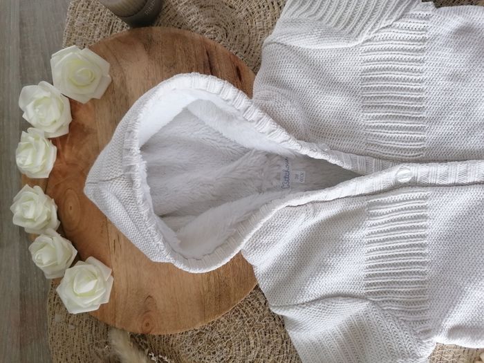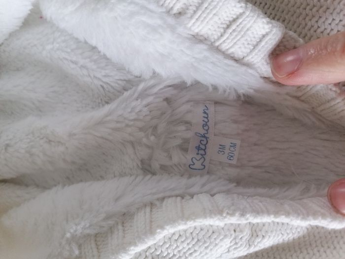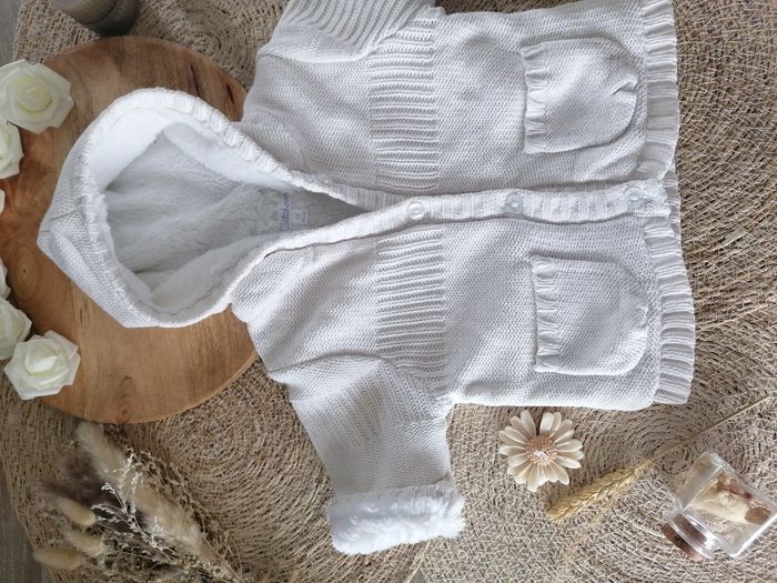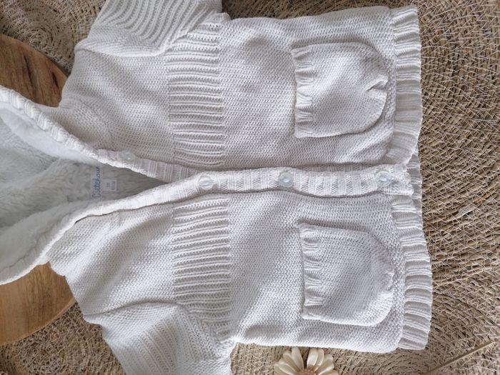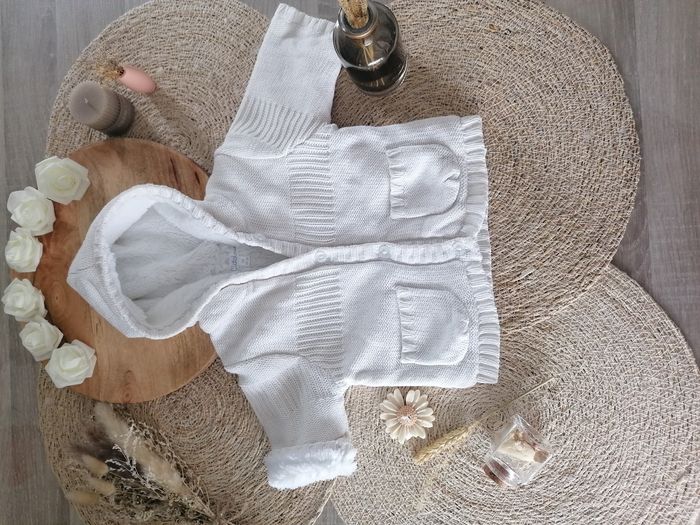 Petit manteau mi saison blanc en maille et intérieur en pilou. Mixte Taille 3 mois Très bon état