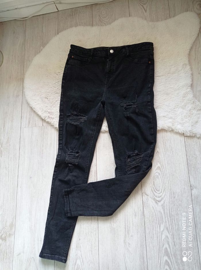 Jean slim noir Denim and Co effet destroy taille 44  - photo numéro 1