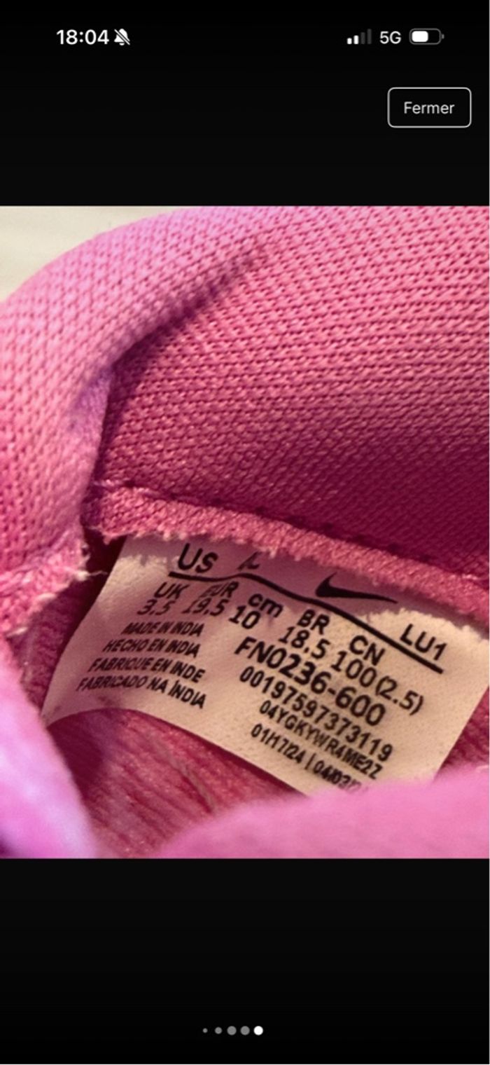 Paire de Nike rose taille 19,5 très bon état - photo numéro 6