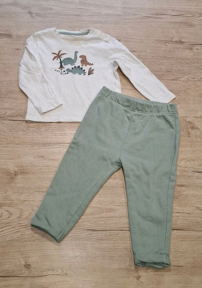 Ensemble tshirt à manches longues + pantalon 12 mois 100% coton En très bon état, peu porté Maison non fumeur Envoi rapide