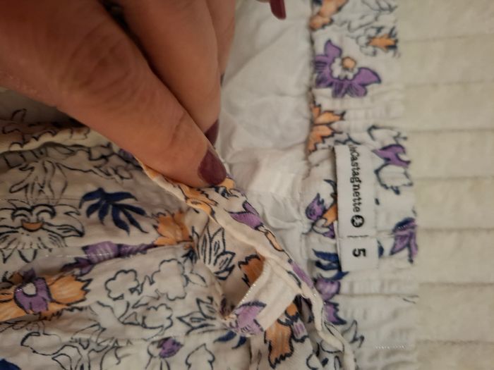 Pantalon blanc avec dessins de fleurs multicolores Très bon état Lulu Castagnette 5 ans