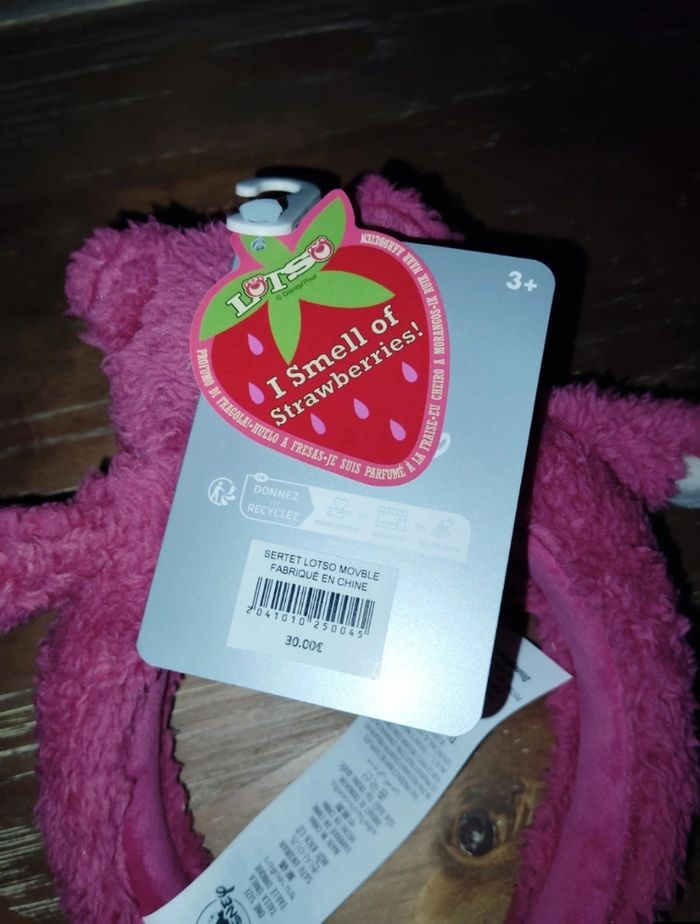 Serre tête lotso Toy Story parfumé à la fraise, Disney, neuf avec étiquette.
