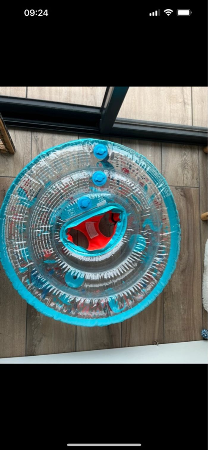 Bouée Nabaiji pour bébé, avec siège intégré et dossier gonflable pour un meilleur confort. Sécurité optimale grâce aux deux poignées pour que l’adulte puisse tenir la bouée. Design coloré avec motifs marins, parfait pour initier bébé à l’eau en toute tranquillité. Très bon état, utilisée seulement quelques fois. 💦 Convient aux bébés de 7 à 15 kg (environ 6-24 mois). 📦 Envoi rapide et soigné. # #bouéebébé #nabaiji #piscinebébé #apprentissage #sécuritébébé #accessoiresbébé #jouetsdeleau #été2025 #piscine #plage #flotteur