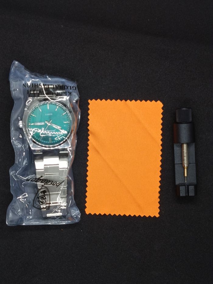 Montre neuf Envoi rapide et très bien protégé Il faudra ajuster la poignée car trop grande ( avec le petit outil noir fourni avec ) Il faudra enfoncer la petite maulette pour démarrer la montre , je l'ai tirée exprès pour ne pas usé la montre .