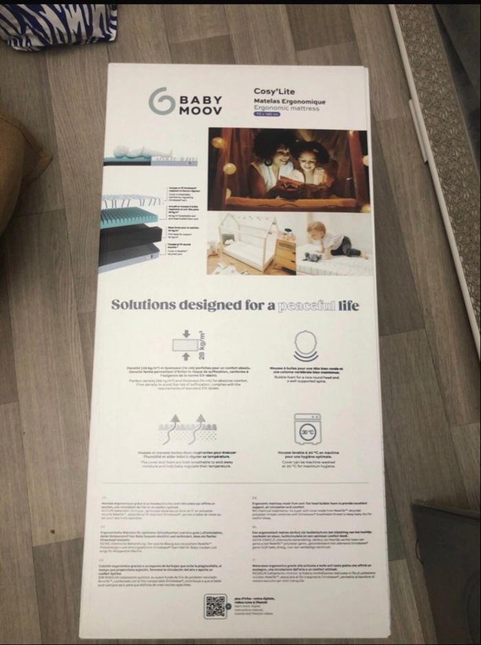 Matelas bébé BabyMoov Cosy’Lite, conçu pour un sommeil confortable et sécurisé. Jamais servi , propre et bien entretenu. De la naissance jusqu’à 5–6 ans enviro ✔️ Matelas ergonomique ✔️ Bonne densité pour un maintien optimal ✔️ Respirant (aération + régulation de la température) ✔️ Déhoussable ✔️ Housse lavable en machine à 30° ✔️ Marque reconnue BabyMoov Idéal pour lit bébé / lit à barreaux Jamais servir. Envoyer rapide .