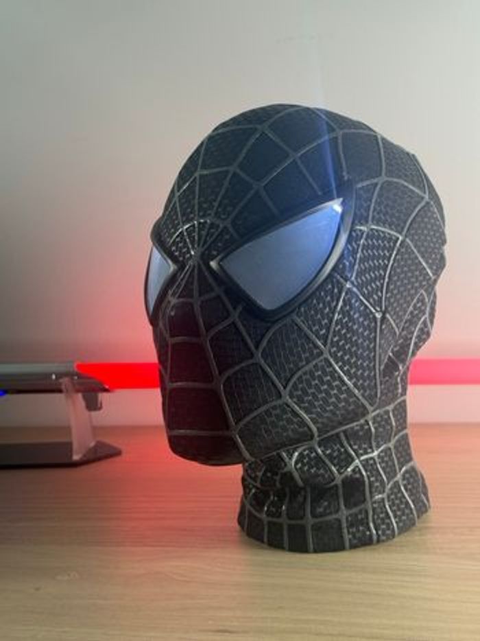 Trés bon état Masque du film Spiderman 3 Idéal pour cosplay ou exposition Yeux éclairants en blanc ou rouge Envoi rapide