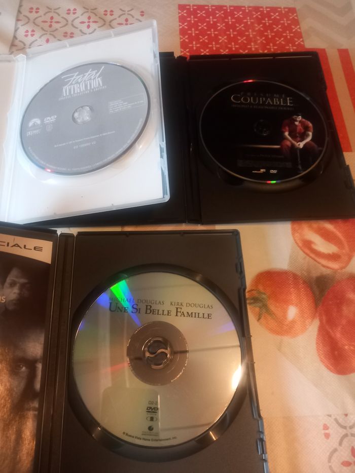3 DVD films avec Michael Douglas 1 : Liaison fatale 2 : Présumé coupable 3 : Une si belle famille En très bon état