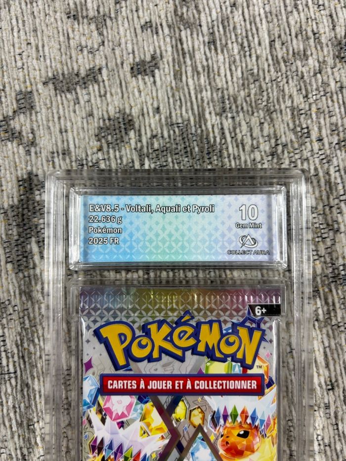 • Booster Pokemon EV8.5 Évolutions Prismatiques Voltali, Aquali et Pyroli Gradé Collect Aura 10 • Prix : 50€ Pour plus d’informations ou de photos, n’hésitez pas à me contacter !