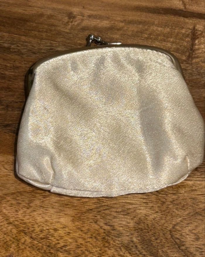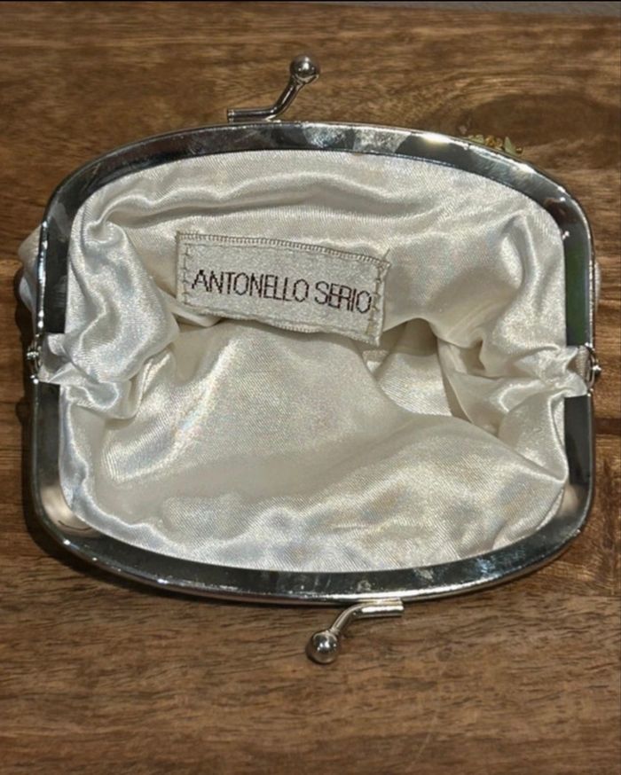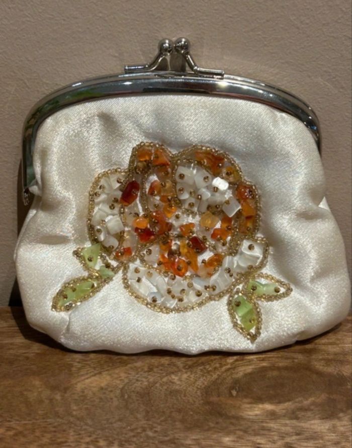 Jolie porte monnaie Antonello Serio Écru brodé de perle Dimension 12 × 12 cm Style vintage