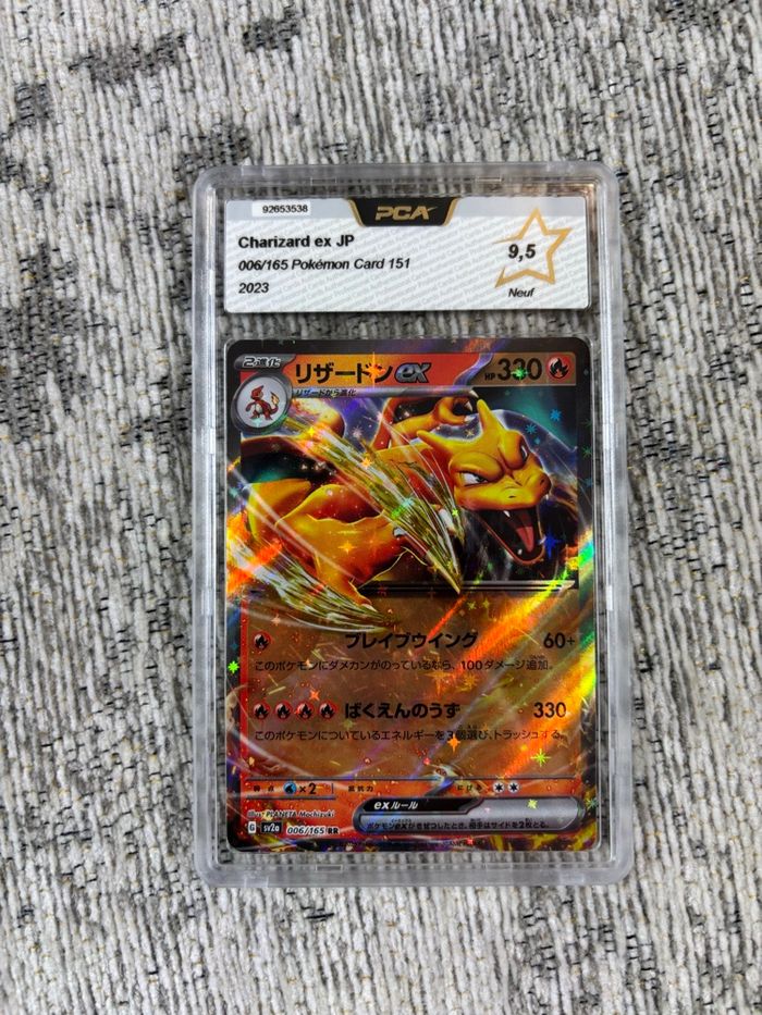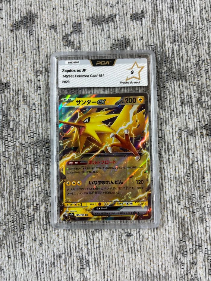 • Lot x3 Cartes Pokémon 151 Dracafeu 006/165 Tortank 009/165 Élector 145/165 Japonaise Gradée PCA • Prix : 40€ Pour plus d’informations ou de photos, n’hésitez pas à me contacter !
