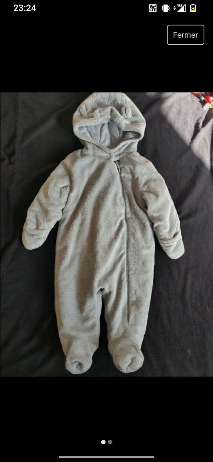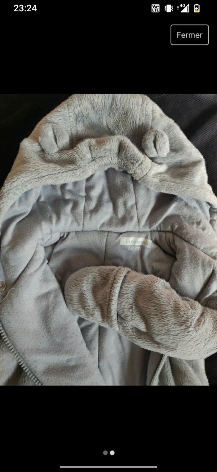Combipilote très chaude avec capuche et moufles intégrés de marque In extenso taille 6-9 mois, en très bon état.